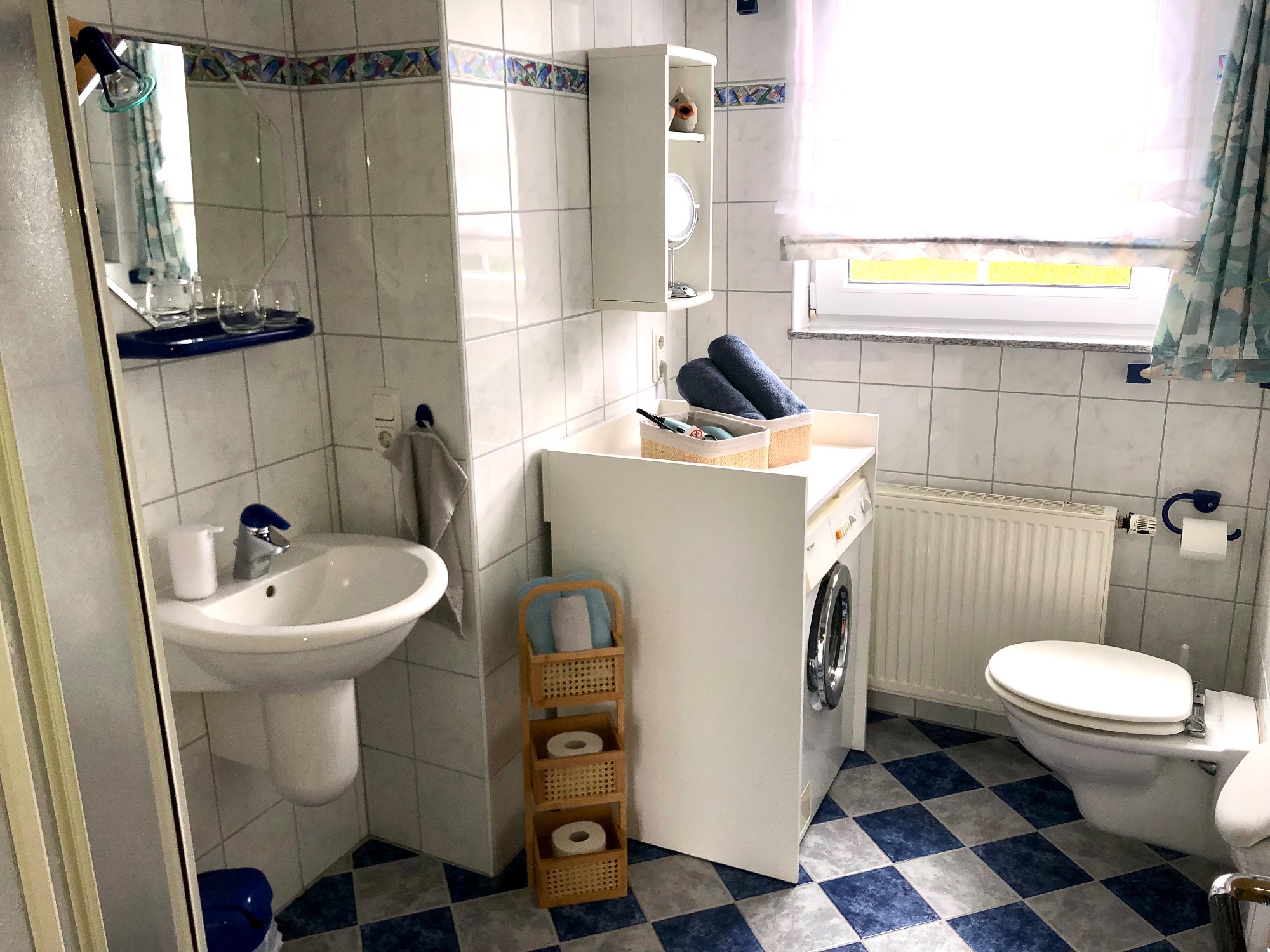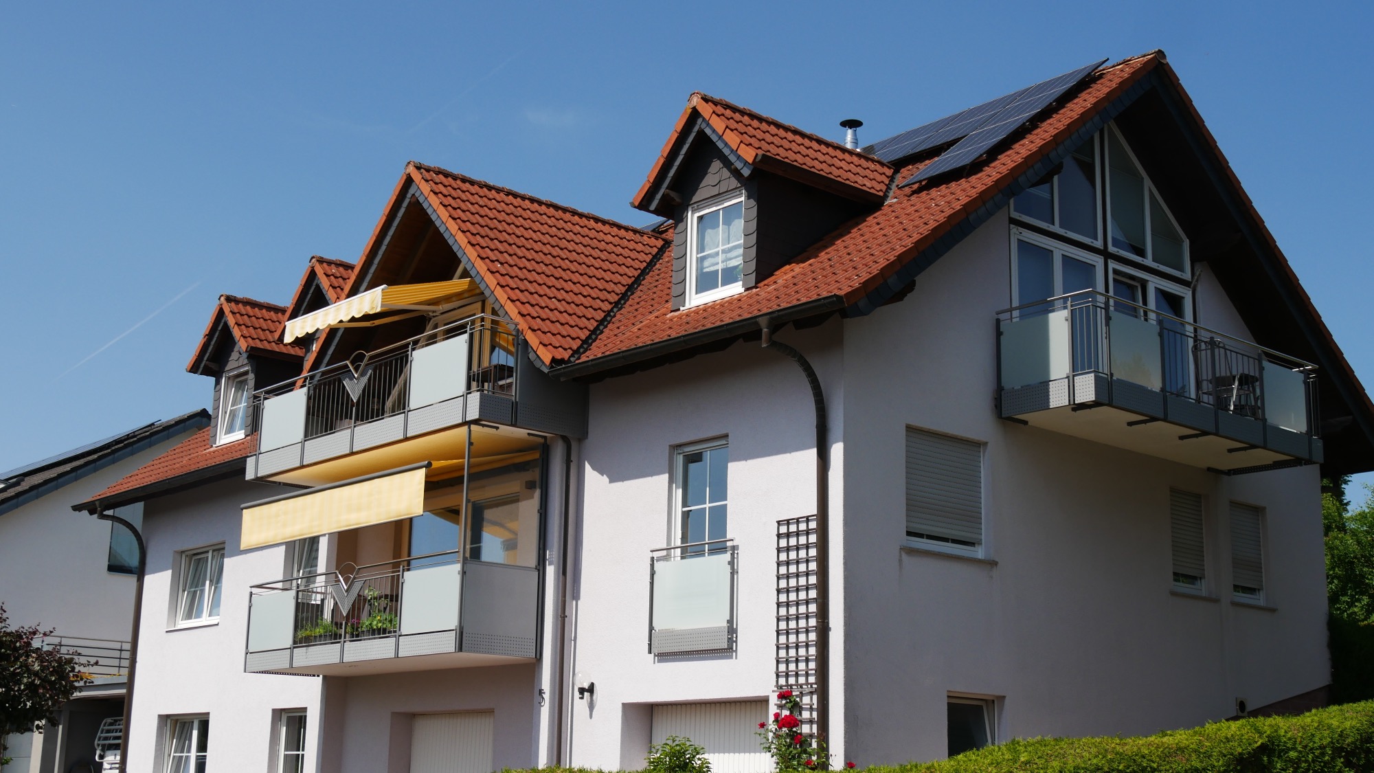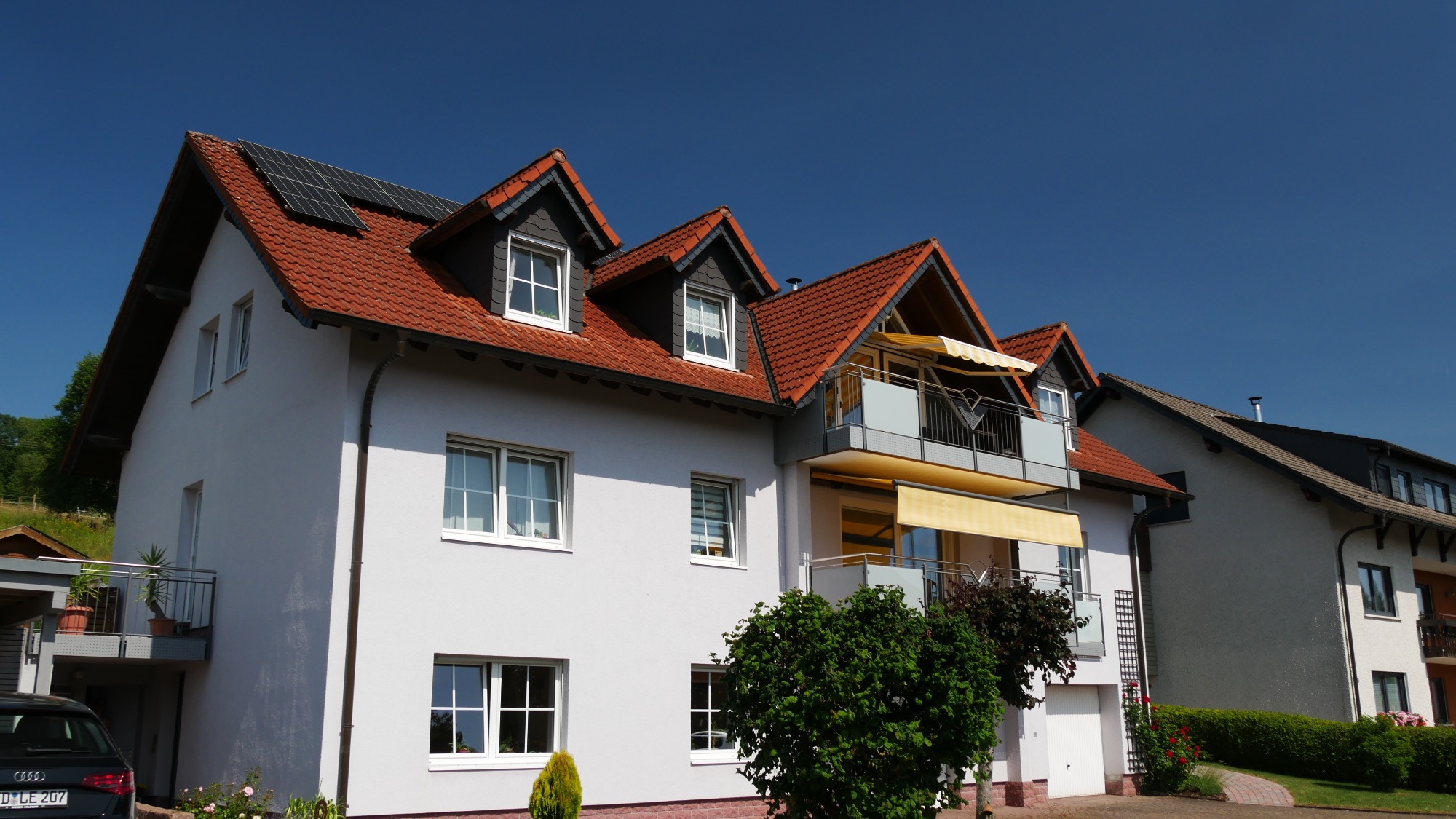 Unser Haus liegt an einer ruhigen Straße. Die Wohnung verfügt über zwei sonnige Balkone. Bei schönem Wetter lädt auch der großzügige Garten mit Sitzecke, Liegestühlen und Grillmöglichkeit zum Verweilen ein.
